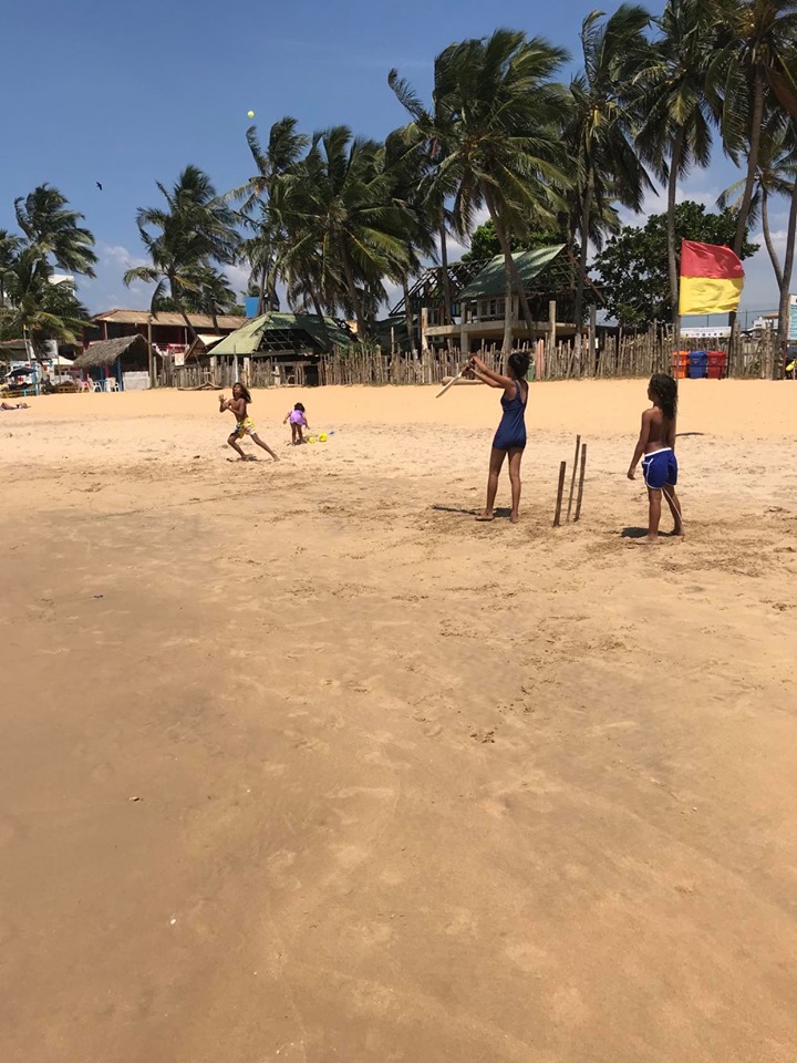 Jag har haft sportlov och varit i Sri Lanka. Min mamma är född i Sri Lanka. För tre år sedan var i och reste runt där i 2 månader, så jag kände igen mig mycket. Vi bodde på ett hotell som jag gillar i staden Hikkaduwa. Vi surfade och matade sköldpaddor ute i havet. Vi besökte också en sköldpaddsfarm som räddar sköldpaddor. Eftersom många stjäl sköldpaddsägg på stranden behövs farmen så att sköldpaddorna kan få kläckas där och sedan släppas ut i havet. Vi träffade min kusin Hashi och spelade cricket på stranden. Hashi kan nästan bara singalesiska och lite engelska. Men hon kunde kunde skriva i en app så blev det engelska.