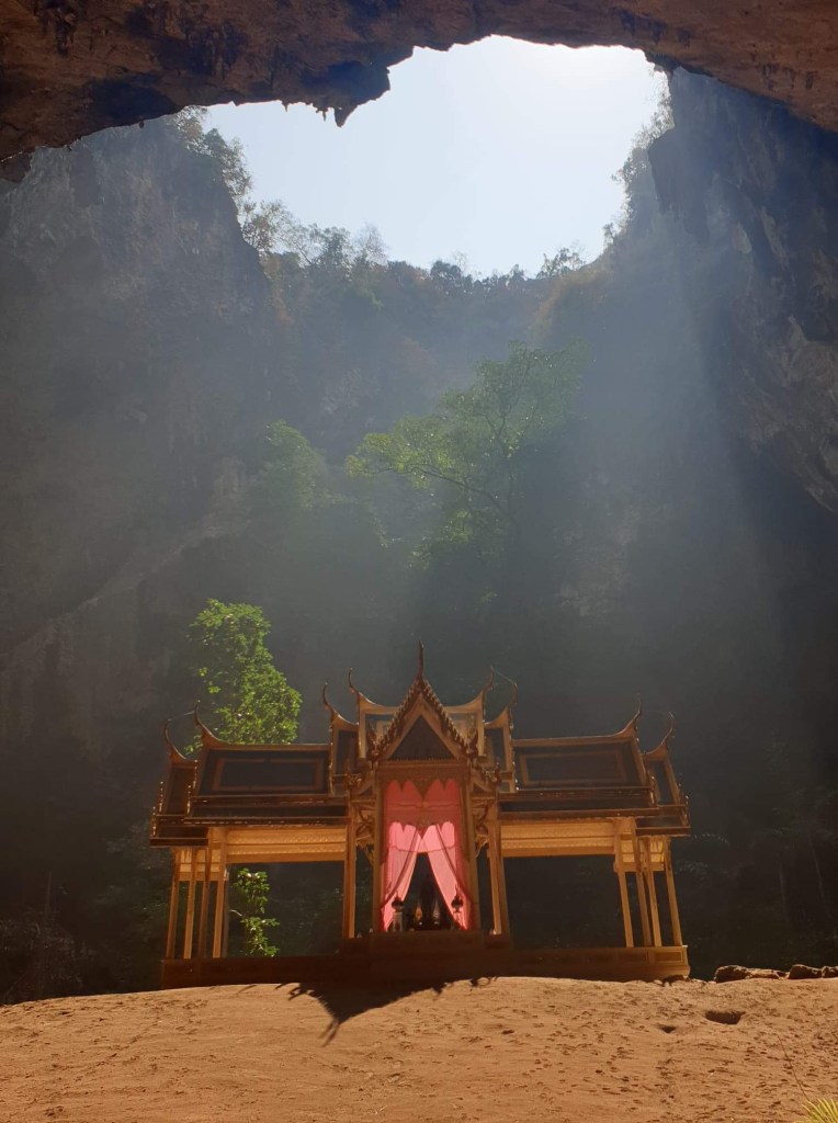 När farmor och farfar var här var vi på tog en utflykt till Phraya Nakhon Cave. Det är ett tempel som ligger gömt i en grotta som man var tvungen att klättra till.